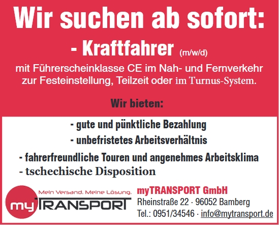 S řidičským průkazem sk. CE pro lokální i dálkovou dopravu.